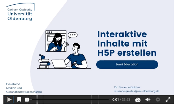 H5P (Html5-Package) ist eine freie quelloffene Software für die Erstellung interaktiver Inhalte und kann zum Beispiel für Memories, Wortpuzzles, Diagramme, Präsentationen, Lernkarten und ähnliche Angebote genutzt werden. Das Plugin Lernmodule (zu finden über den Reiter „Mehr...”) und das Blog Ihrer Veranstaltung in Stud.IP (Wordpress Schnittstelle) bieten eine Möglichkeit, direkt im Lernmanagementsystem H5P Inhalte zu erstellen.