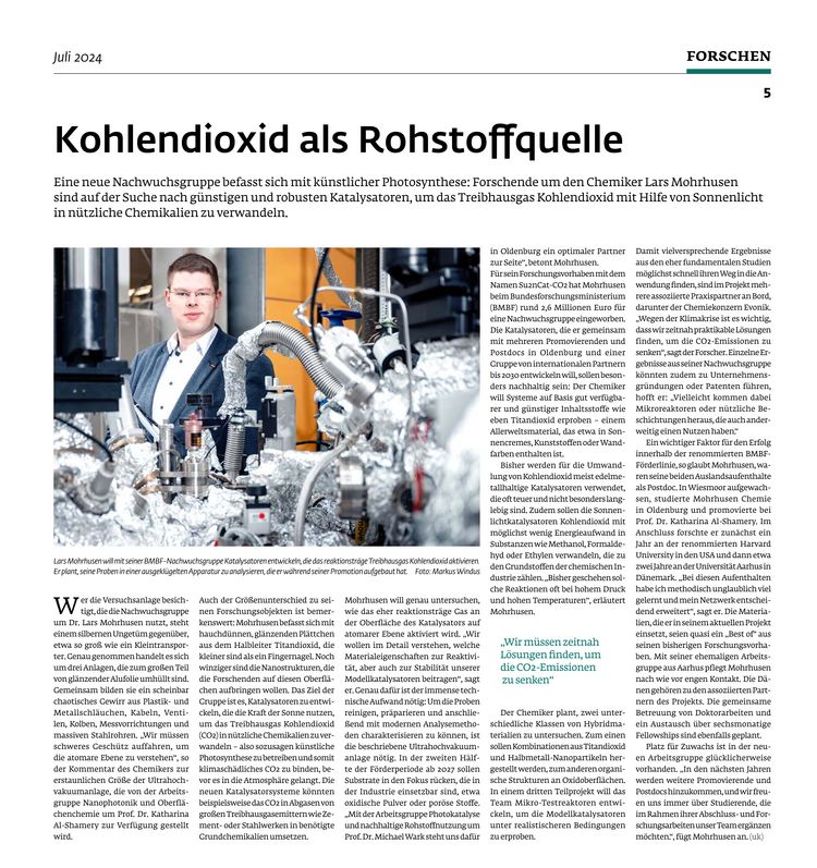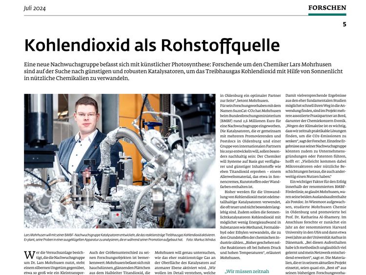 Das Universitätsmagazin UNI-info berichtet über unsere Forschung im BMBF Projekt Su2nCat-CO2