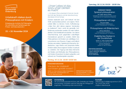 Tagungseinladung des Instituts für Philosophie für Studierende, Lehrkräfte und Interessierte der Primar- und Sekundarstufe I15. & 16. November 2024
