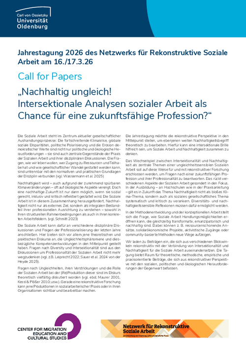 Call for Papers „Nachhaltig ungleich! Intersektionale Analysen sozialer Arbeit als Chance für eine zukunftsfähige Profession?“