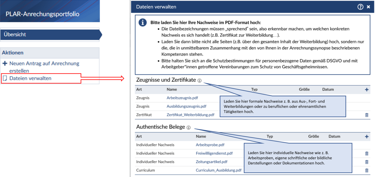 Im Rahmen des Anrechnungsportfolios wird grundsätzlich zwischen zwei Arten von Nachweisen unterschieden: