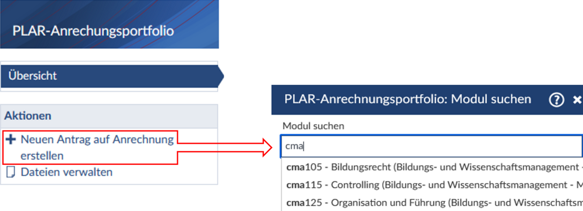 - Sie können den Anrechnungsantrag nur einreichen, wenn Sie sich noch nicht für die entsprechende Modulprüfung verbindlich angemeldet haben (bzw. die Abmeldung nicht mehr möglich ist). Das Stellen eines Anrechnungsantrags ist ebenfalls nicht möglich, wenn Sie bereits einen Prüfungsversuch unternommen haben.