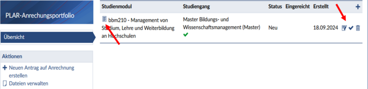 Das von Ihnen erstellte Portfolio sehen Sie in der Übersichtsliste unter dem Status „Neu“.
