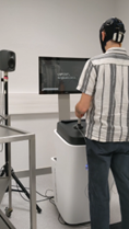 Die Elektroenzephalographie (EEG) erlaubt es Hirnaktivität mittels Elektroden auf der Kopfhaut zu messen. Für Messungen unter Laborbedingungen werden Elektrodenkappen verwendet. Für EEG Messungen im Alltag sind diese Kappen nicht optimal. Daher entwickeln wir neue Geräte um EEG unauffällig im Alltag zu messen. Diese Entwicklung geht schrittweise voran. Unser derzeitiger Messaufbau sieht derzeit aus aus:
