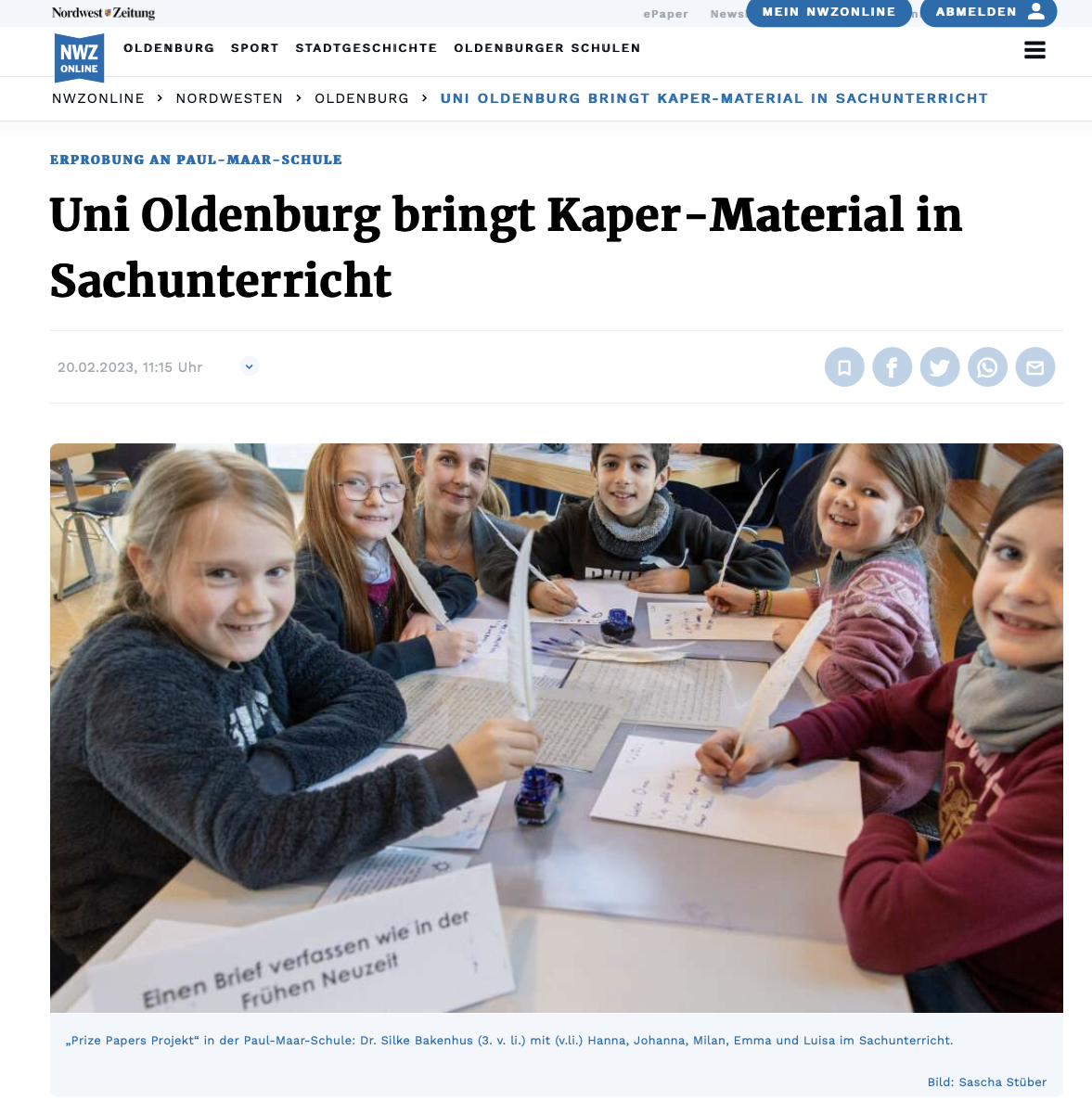 Uni Oldenburg bringt Kaper-Material in Sachunterricht (NWZ 20.2.23)