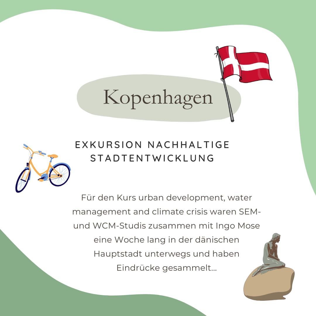 Im März machten sich die Studis aus den Studiengängen WCM und SEM im Rahmen des Moduls „Urban development, water management and climate crisis“ mit Prof. Ingo Mose gemeinsam auf den Weg nach Kopenhagen, um die dänische Hauptstadt besser kennenzulernen.