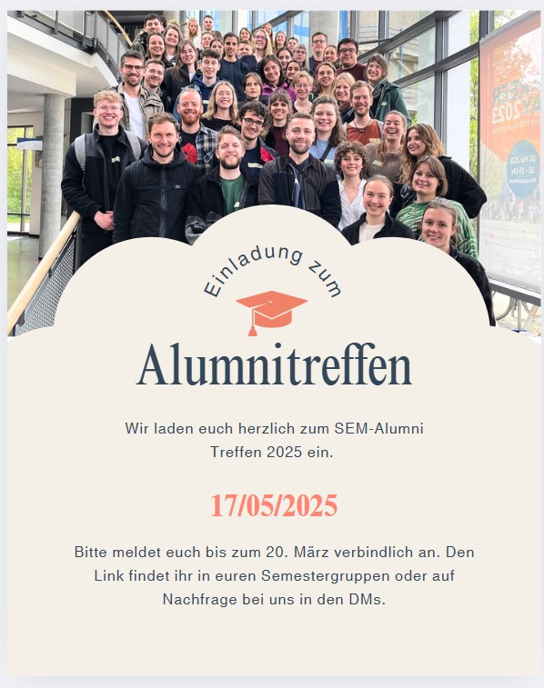 wir laden euch herzlich zum SEM-Alumni-Treffen 2025 am Samstag den 17. Mai ein!