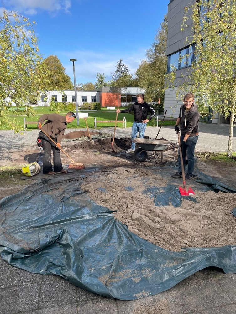 Dabei ging es darum, innerhalb eines Wochenendes den bis dato sehr tristen Innenhof des A05 mithilfe von selbstgebauten Hochbeeten umzugestalten. Dadurch ist der Innenhof nicht nur optisch ansprechender geworden, sondern bietet aufgrund des bewussten Einsatzes entsprechender Pflanzen auch ein Zuhause für viele Insekten und Vögel. Gleichzeitig ist in Planung, den Innenhof zukünftig auch mit einigen Bänken auszustatten, der dann als Ruheort für Mitglieder der Universität genutzt werden kann.