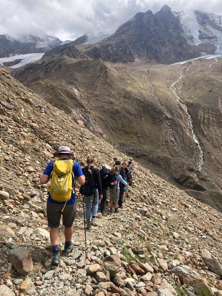 Der erste Tag begann mit einer kleinen Wanderung, in der wir viel über die Vegetation und die Artenvielfalt im Vinschgau gelernt haben. Am zweiten Tag haben wir eine Wanderung in der „Biosfera Val Müstair“ in der Schweiz gemacht und einen Vortrag der zuständigen Umweltbeauftragten gehört. Am dritten Tag sind wir in den Schweizer Nationalpark gefahren und haben in Kombination mit einer kurzen Wanderung viel spannenden Input eines Parkmitarbeiters bekommen. In den darauffolgenden Tagen gab es neben einer großen, 600 Höhenmeter-Wanderung zu einem italienischen Gletscher einen Ausflug zu einem ökologischen Apfelbauer und einem ökologischen Milchlandwirt, bei dem wir neben einem guten Vortrag auch selbstgemachten Käse und Brot probieren konnten.