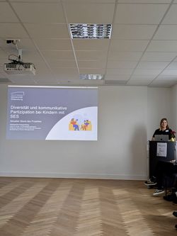 Am 23.09.2022 hat Aleksandra Kappenberg einen Vortrag mit dem Titel „Das zeig‘ ich dir! Multimodale Initiierungen und Reaktionen von Kindern im Zweitspracherwerb während dialogischen Bilderbuchbetrachtungen“ beim 34. Bundeskongress der Deutschen Gesellschaft für Sprachheilpädagogik gehalten. Außerdem ist Aleksandras Beitrag mit dem Titel „Erfassung sprachlich-kommunikativer Kompetenzen von Vorschulkindern im Zweitspracherwerb. Methodische Perspektiven unter besonderer Berücksichtigung von Multimodalität“ im Kongressband von M. Spreer, M. Wahl & H. Beek (Hrsg.), Sprachentwicklung im Dialog: Digitalität - Kommunikation - Partizipation. Sprachheilpädagogik aktuell. Beiträge für Schule, Kindergarten, therapeutische Praxis (Bd. 4, S. 311-318). Deutsche Gesellschaft für Sprachheilpädagogik e. V., Schulz-Kirchner Verlag erschienen.