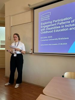 Unter dem Motto “Early Education for All: Celebrating Diversity and Seeking Inclusion” fand vom 25. bis 28. August 2025 die 33. Konferenz der European Early Childhood Education Research Association (EECERA) in Bratislava (Slowakei) statt. Janina Dott stellte in ihrem Vortrag “Exploring Participation: Engagement Patterns of Children with Disabilities in Inclusive Early Childhood Education and Care” Ergebnisse ihres Promotionsprojektes vor. Die Konferenz bot in vielfältigen Symposien Einblicke in aktuelle Fragestellungen der frühkindlichen Bildungsforschung und Möglichkeiten zum internationalen Austausch.