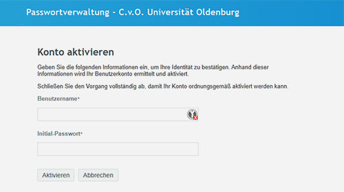 Nach erfolgter Immatrikulation erhalten Sie per E-Mail die Infos für Benutzername, E-Mailadresse und Initial-Passwort Ihres Uni-Accounts. Für die Nutzung müssen Sie Ihr Konto zunächst aktivieren