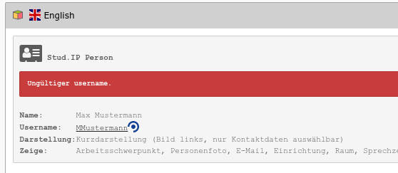 - Die Person, deren Kontaktdaten angezeigt werden sollen, muss diese in Stud.IP für die externe Verwendung freigegeben haben. Nur so ist es datenschutzrechtlich erlaubt, die Kontaktdaten extern sichtbar zu machen. Hat die Person ihre Kontaktdaten in Stud.IP nicht freigegeben, kann also die Einbettung nicht funktionieren. Daher ist es wichtig zu überprüfen, ob alle eingebetteten Kontaktdaten tatsächlich freigegeben sind.