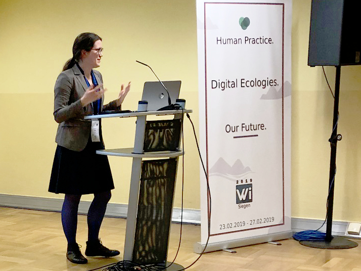 Während der Tagung wurde eco4fin zudem durch VLBA-Chef Prof. Dr.-Ing. Jorge Marx Gómez und die VLBA-Mitarbeiter Sven von Höveling und Dr.-Ing. Andreas Solsbach vertreten. Die 14. Internationale Tagung Wirtschaftsinformatik fand vom 23. bis 27. Februar 2019 in Siegen unter dem Motto „Human Practice. Digital Ecologies. Our Future.“ statt.