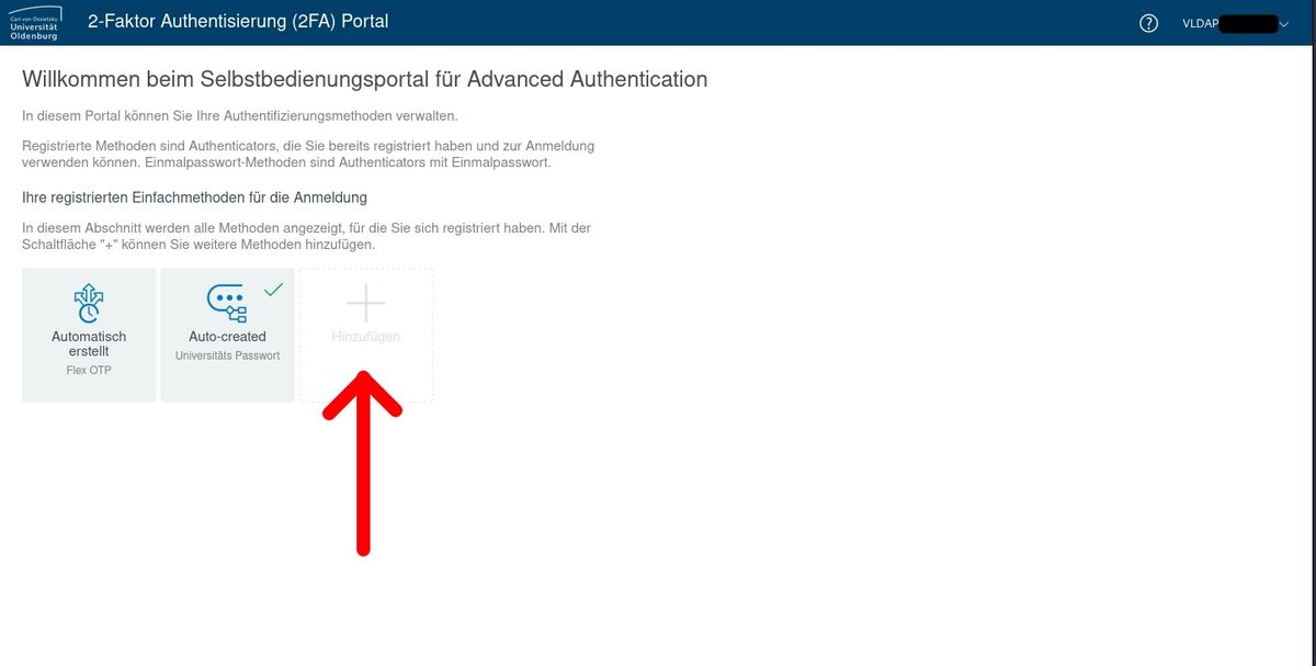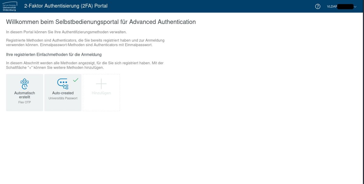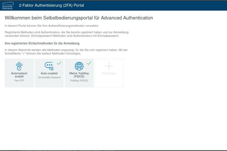 Rufen Sie das 2FA-Portal der Universität Oldenburg auf und führen die Registrierung mit den nachfolgenden Schritten durch:
