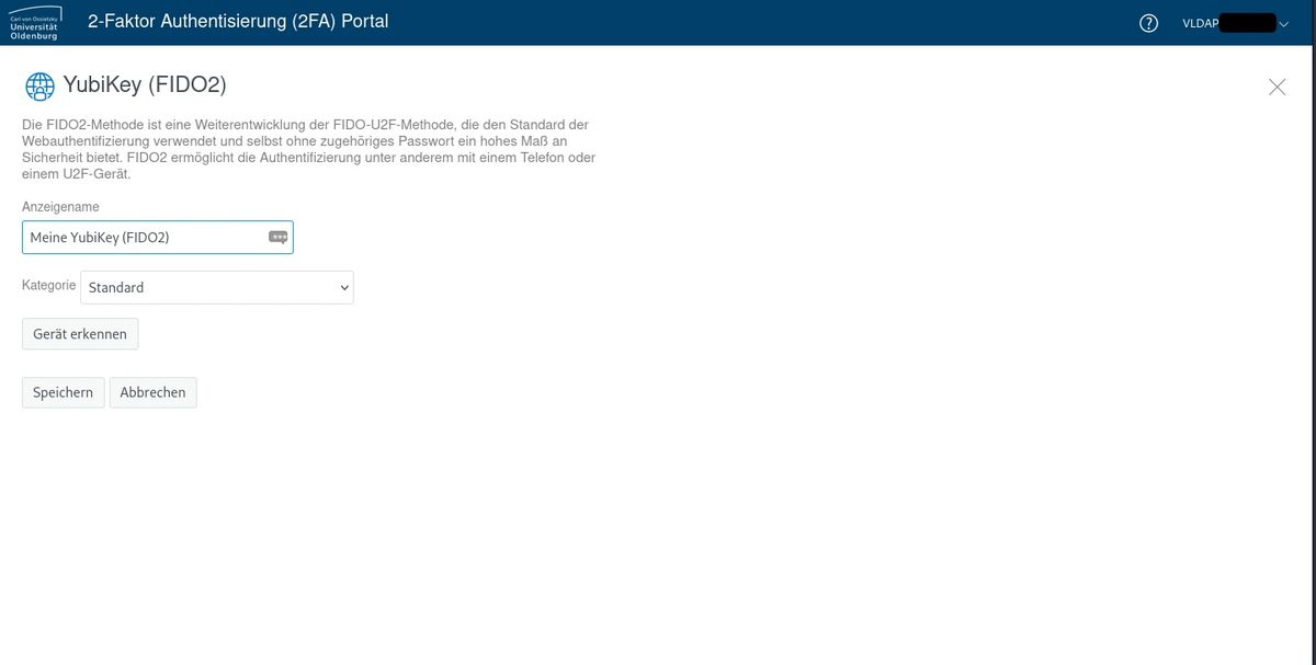 Schritt für Schritt-Anleitung: YubiKey im 2FA-Portal registrieren
