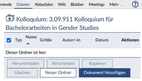 - Bei der Veranstaltung unter dem Reiter: `Dateien´ auf `Dokument hinzufügen´ klicken.